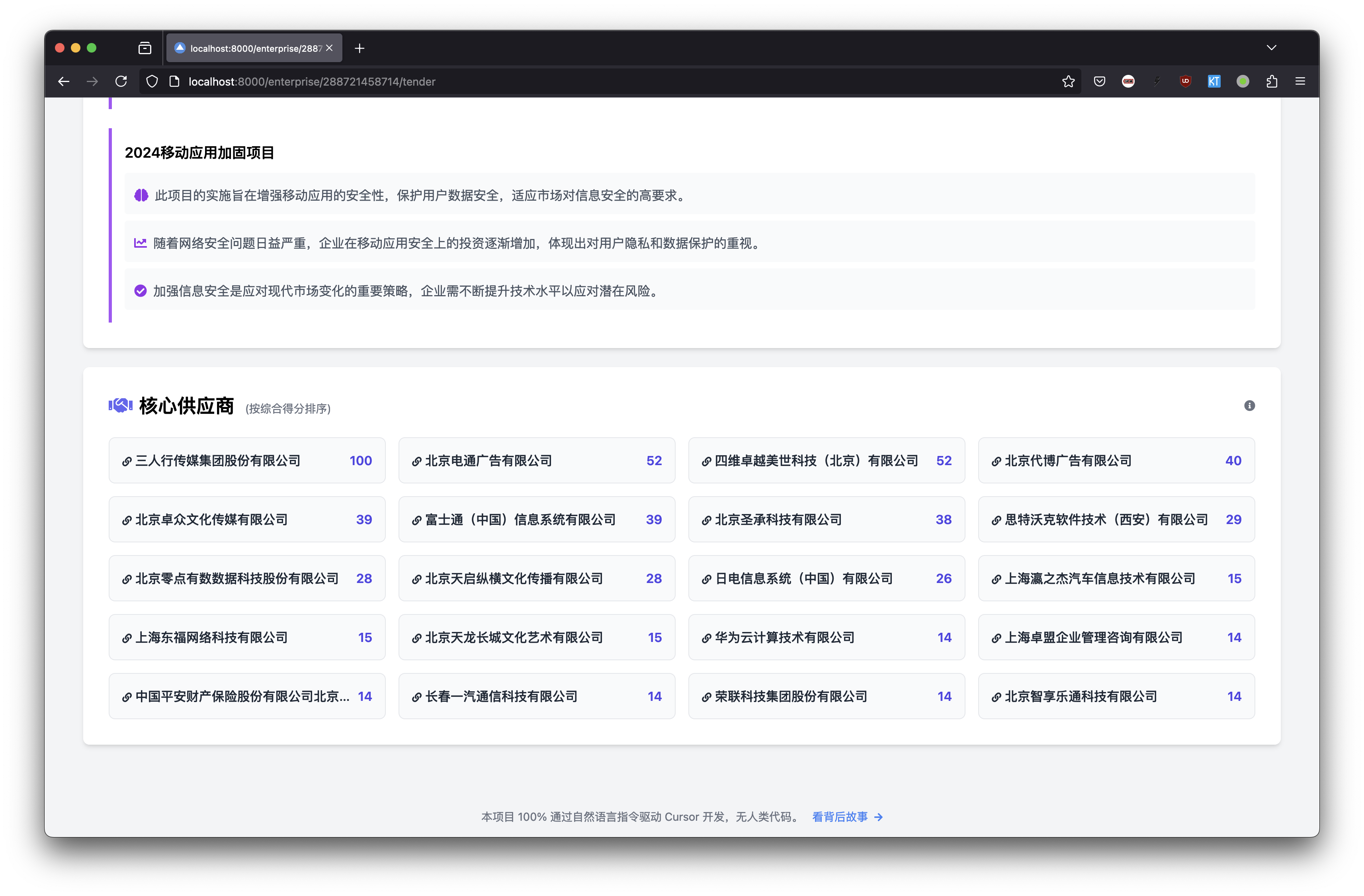 站点数据来自「寻标宝」公开数据,不会预先采集数据,仅当用户首次访问时才会「按需加载」。有需要的小伙伴可以订阅寻标宝会员查看更详细的招投标数据(这个站点没有)。